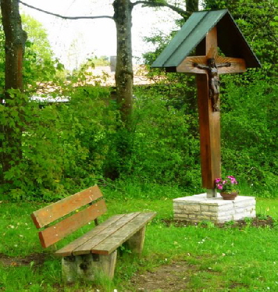 Das von Sepp Weß geschnitzte Flurkreuz am Lindenbaum an der Katzensteigstraße litt seit Jahren unter einem „Schönheitsfehler”: an der rechten Hand von Jesus war der Zeigefinger abgebrochen und unauffindbar.
