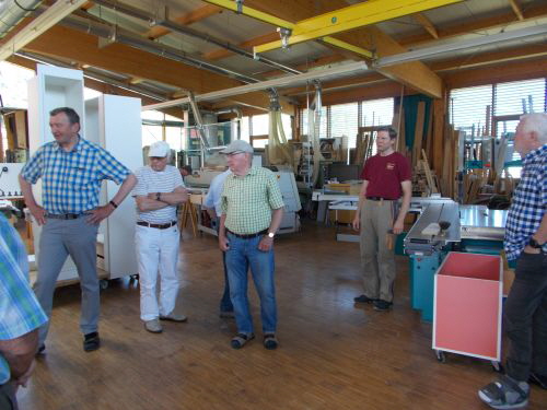 Die Senioren der Kolpingsfamilie besuchten am 13. Juli 2022 die Schreinerei Gruler am Brühlweg in Aixheim. Juniorchef Joachim Gruler begrüßte die Gruppe mit einem Rückblick auf den Werdegang des in 7. Generation geführten Familienbetriebs. Anschließend konnte im Betriebsraum die aktuelle Angebotspalette erkundet werden. Die Schreinerei Gruler hat sich auf Einzelanfertigungen im Möbelbereich spezialisiert und verzichtet auf Serienaufträge.